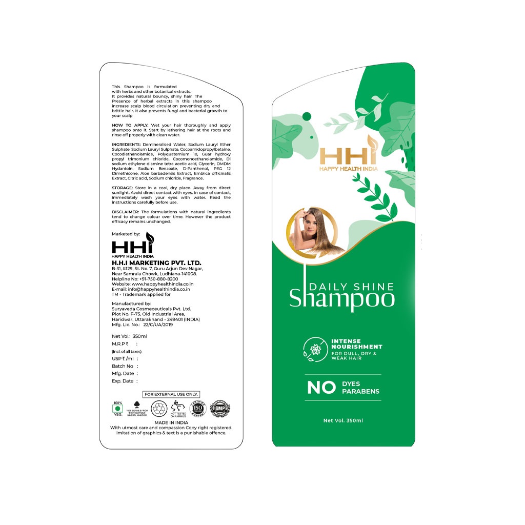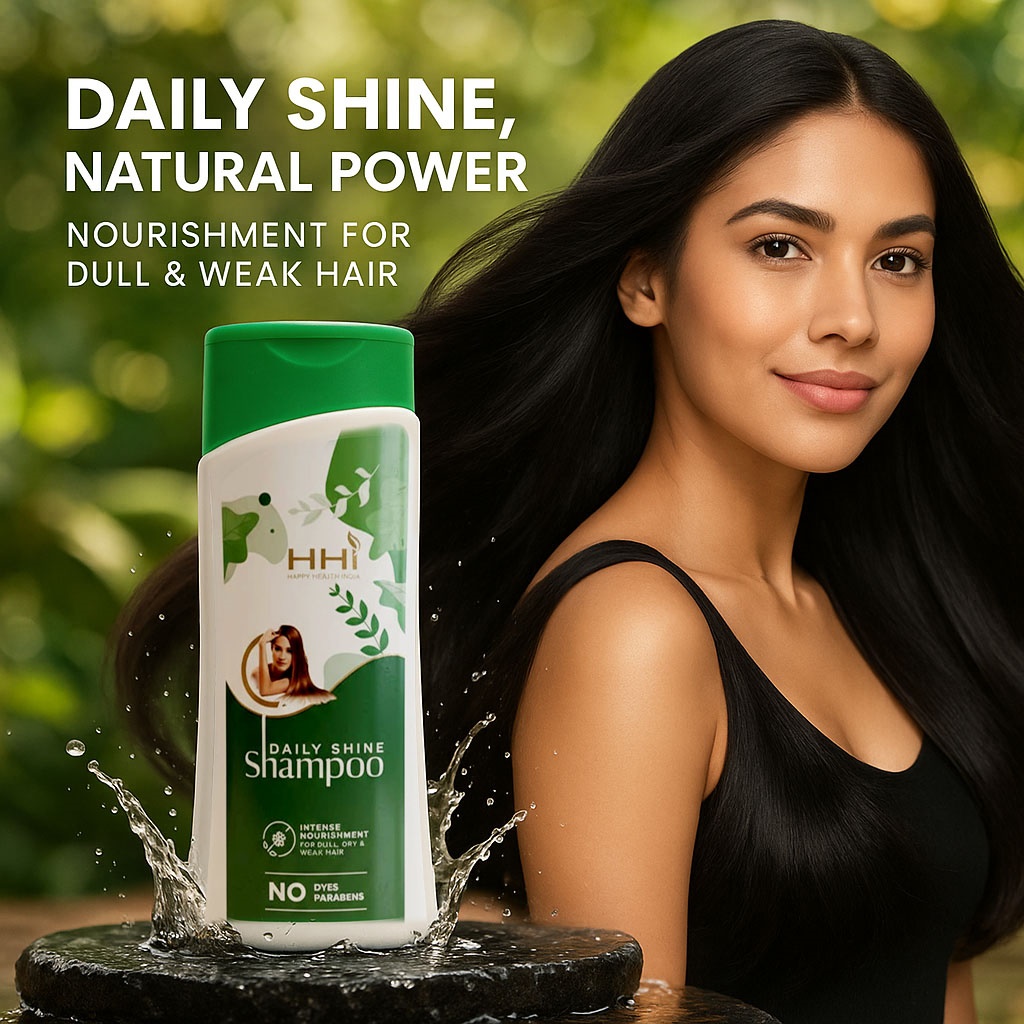 HHI Daily Shine Shampoo by Happy Health India is formulated to provide gentle cleansing and nourishment for everyday hair care. The mild formulation helps remove dirt, excess oil, and daily impurities while supporting softness, smoothness, and natural-looking shine. Regular use helps maintain clean, fresh, and manageable hair as part of a daily hair care routine.