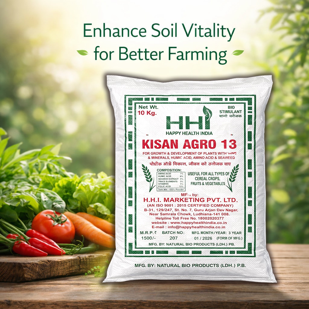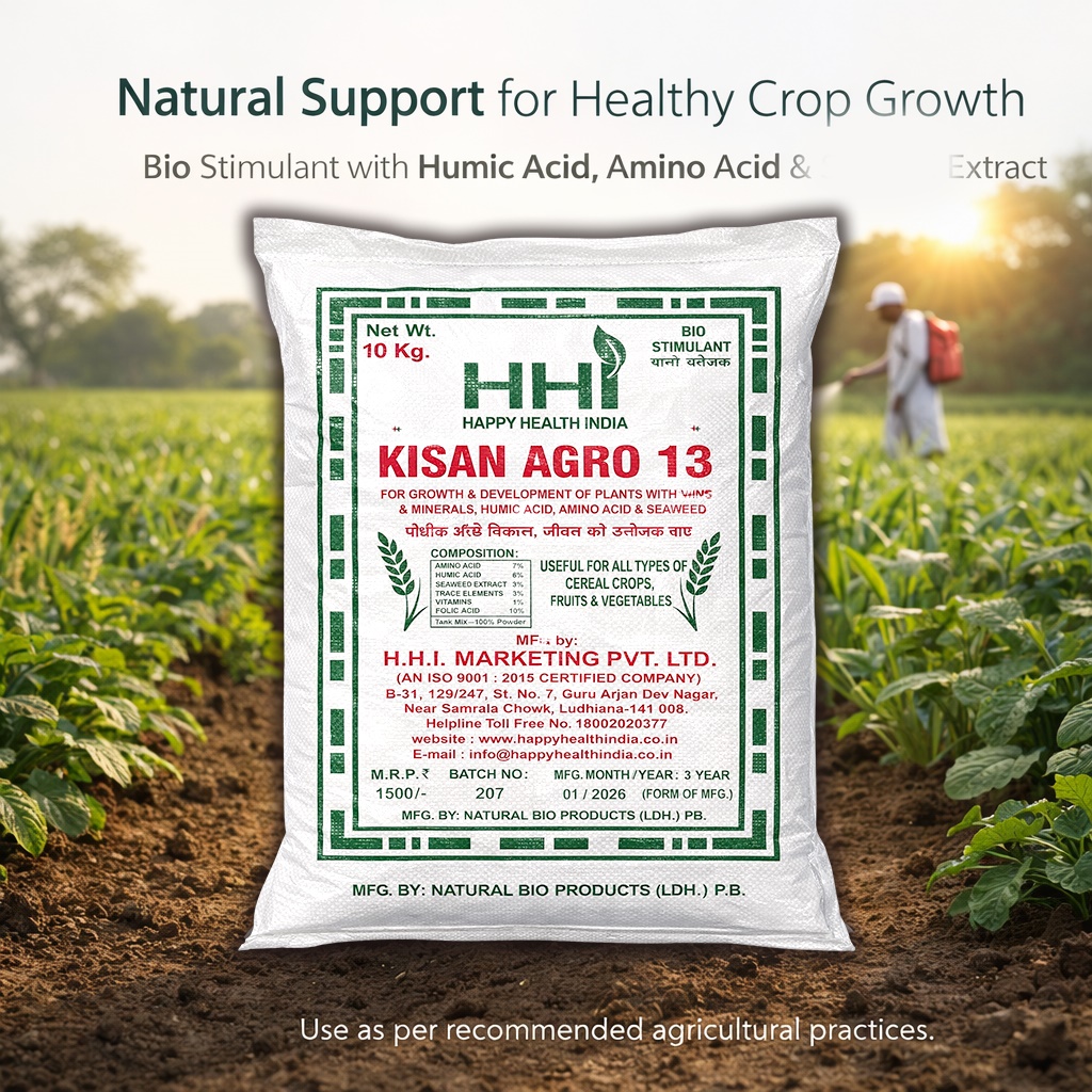 HHI Kisan Agro 13 is a bio-stimulant formulated with minerals, humic acid, amino acids, and seaweed extracts to support plant growth and development. It helps improve nutrient availability in soil and supports overall crop health. Suitable for cereals, fruits, and vegetables, it is designed to be used as part of recommended agricultural practices.