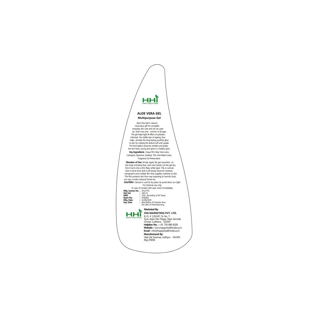 HHI Multipurpose Aloe Vera Gel by Happy Health India is formulated with aloe vera juice to provide gentle hydration and refreshing care. The lightweight gel helps moisturize the skin while supporting softness and smoothness. It can also be used as part of a regular hair care routine to help keep hair feeling soft and manageable. Suitable for everyday personal care use.