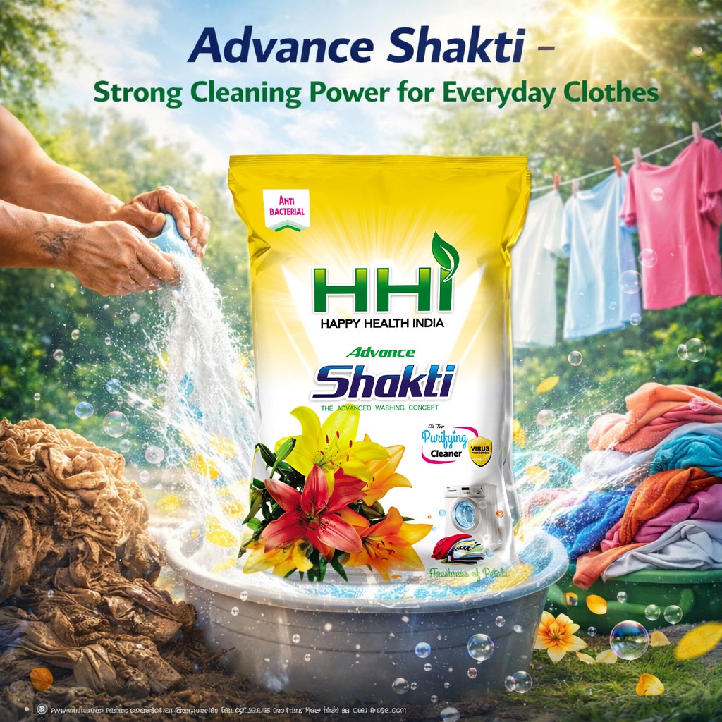 HHI Advance Shakti Detergent Powder helps support effective removal of dirt and stains for daily laundry care.